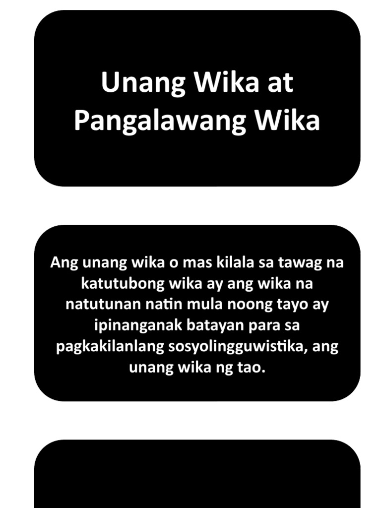 ANG UNANG WIKA O MAS KILALA SA TAWAG NA KATUTUBONG WIKA KILALA RIN BILANG INANG WIKA O ARTERYAL NA WIKA AY ANG WIKA NA NATUTUNAN NATIN MULA NG TAYO AY IPINANGANAK. Behaviorist naniniwalang ang paggamit ng wika ay natututunan sa paulit-ulit nito2. Batayan para sa pagkakilanlang sosyolinggwistika ang unang wika ng isang tao.